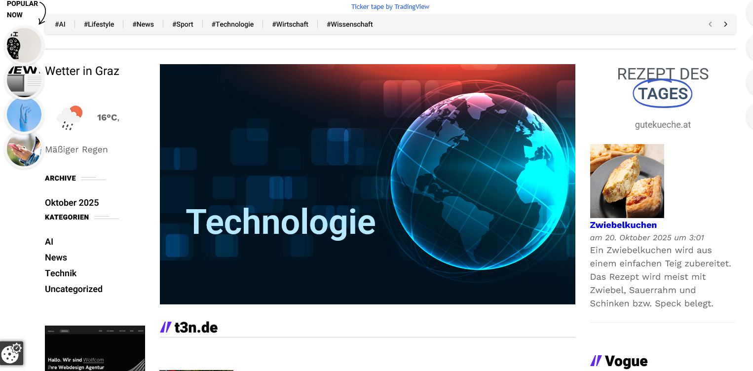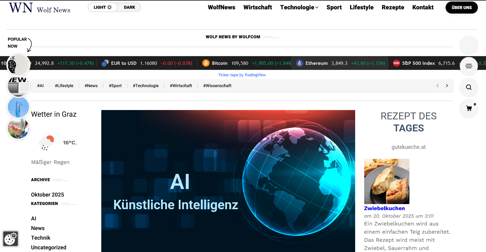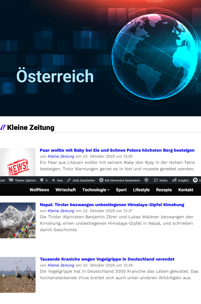 WOLF NEWS. WolfNews ist ein unabhängiges Nachrichten-Portal. Wir bündeln aktuelle Meldungen aus Österreich, der Welt, Wirtschaft, Sport, Technologie, Lifestyle und Rezeptideen. Ziel ist es, unseren Leserinnen und Lesern einen schnellen Überblick über die wichtigsten Themen des Tages zu geben – klar strukturiert und übersichtlich.